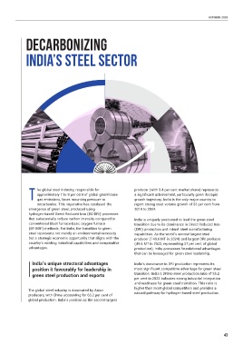 that substantially reduce carbon intensity compared to India is uniquely positioned to lead the green steel