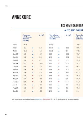 Passenger y-o-y% Two-wheeler y-o-y% Three-wheeler y-o-y% Tractor sales y-o-y% Construction y-o-y%